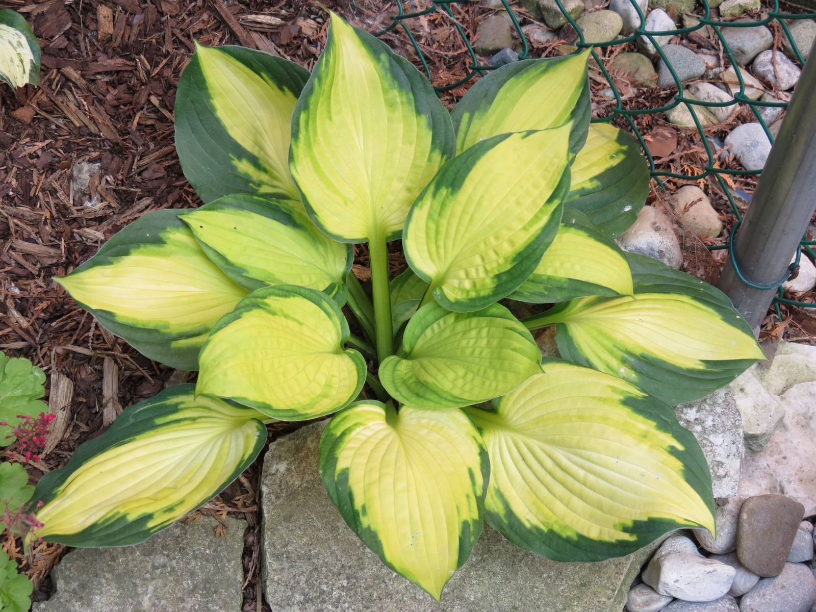 Lombszín: sárga narancs levélközép, kék-zöld szegéllyel.