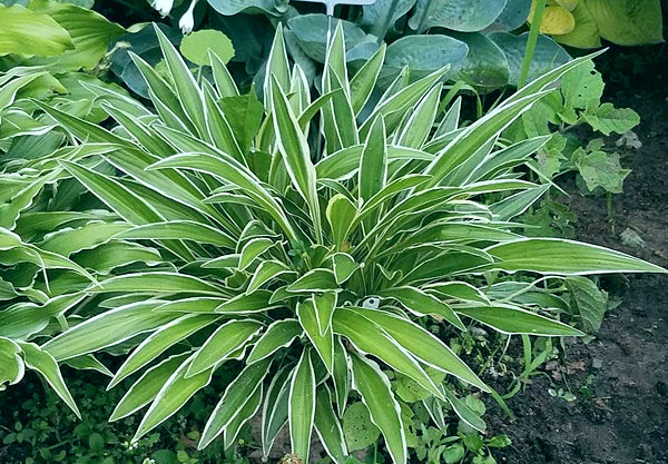 Lombszín: felfelé álló keskeny levelek élénk zöld színűek, a levél széle fehér.